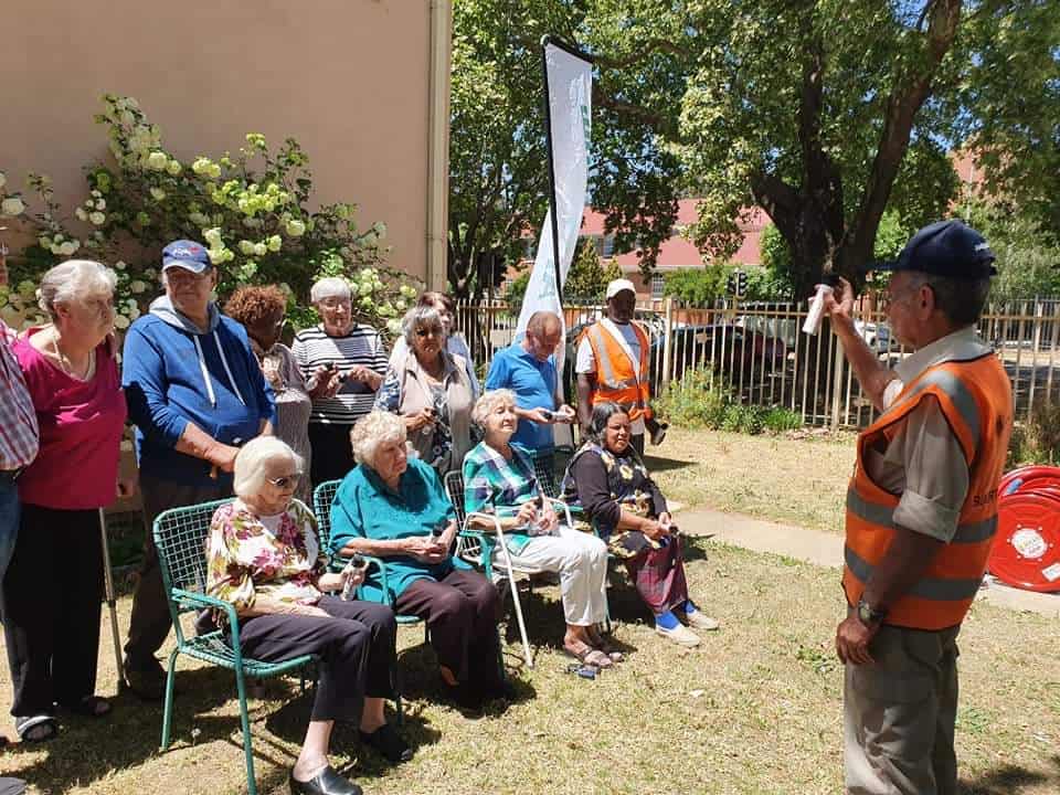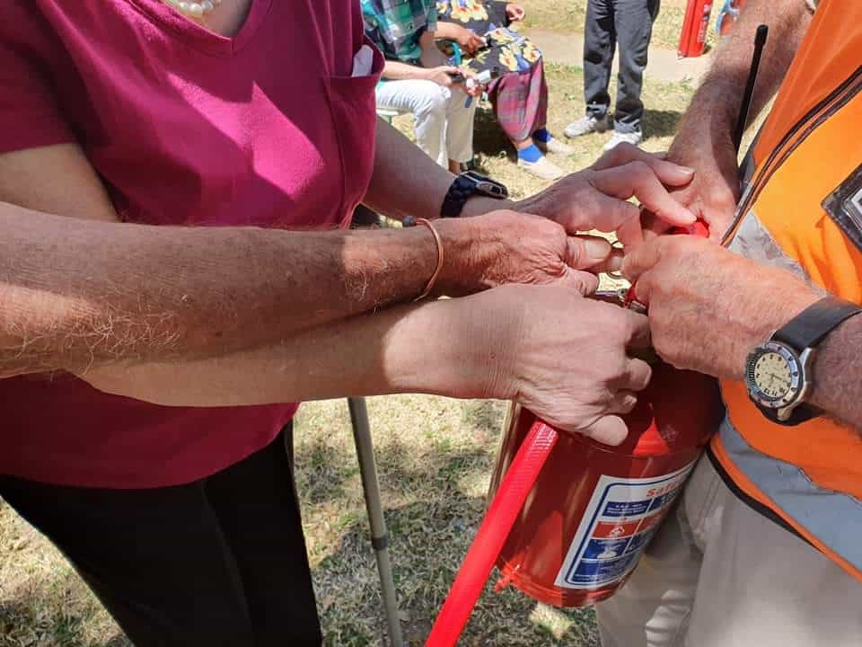Tydens dié opleidingsessie het bejaardes geleer hoe om pepersproei korrek as selfverdediging te gebruik. Elke persoon wat teenwoordig was het hul eie pepersproei ontvang. Hulle het ook tydens ’n demonstrasie geleer hoe om ’n brandblusser te gebruik.