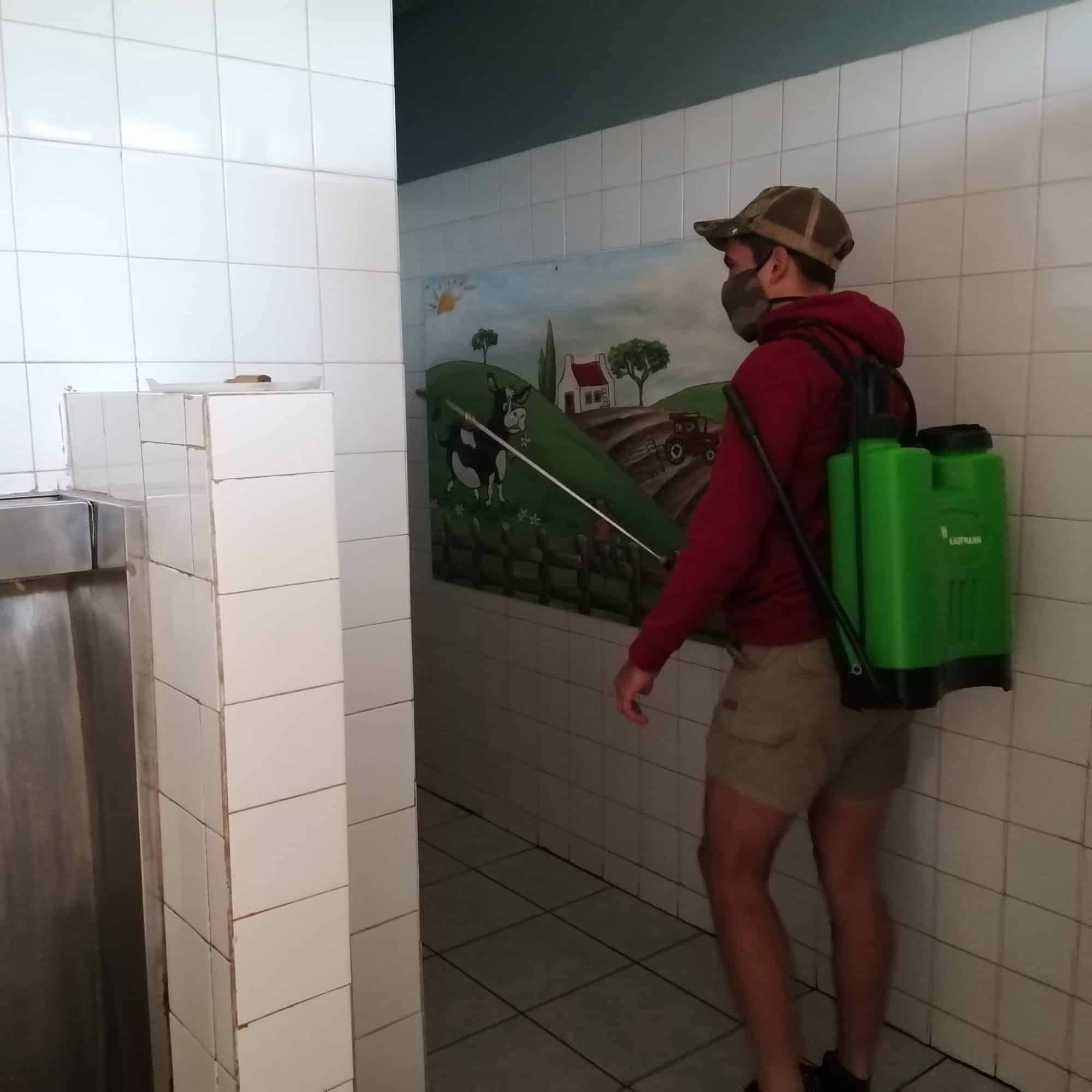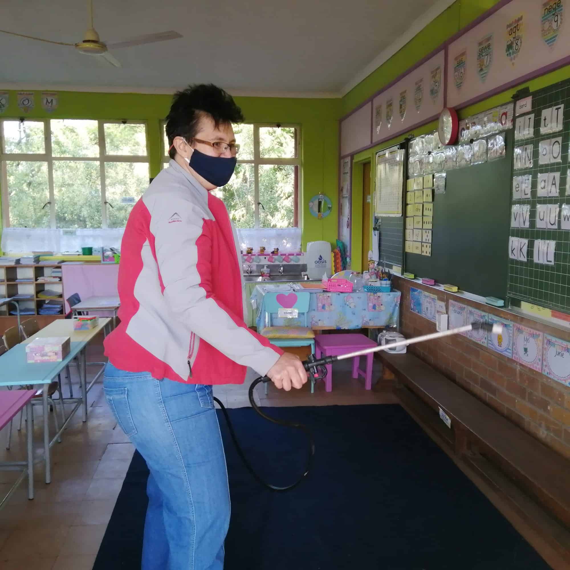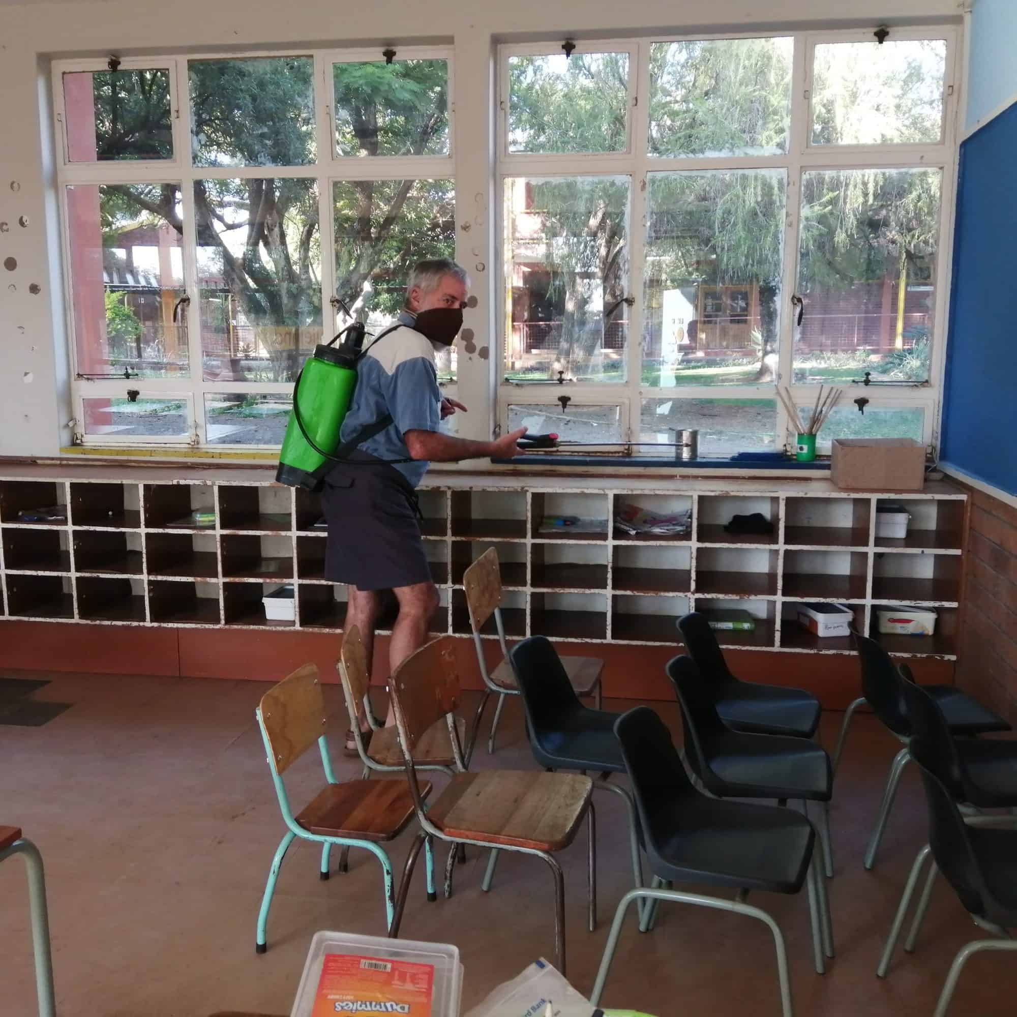 Die tak het die buurtwag en die jeugvleuel ingespan om te help en die skool is met ses rugsakspuite en ’n trekker ontsmet. Dit het die span twee uur geneem om die terrein, klaskamers, badkamers, saal en personeelkamer te ontsmet.