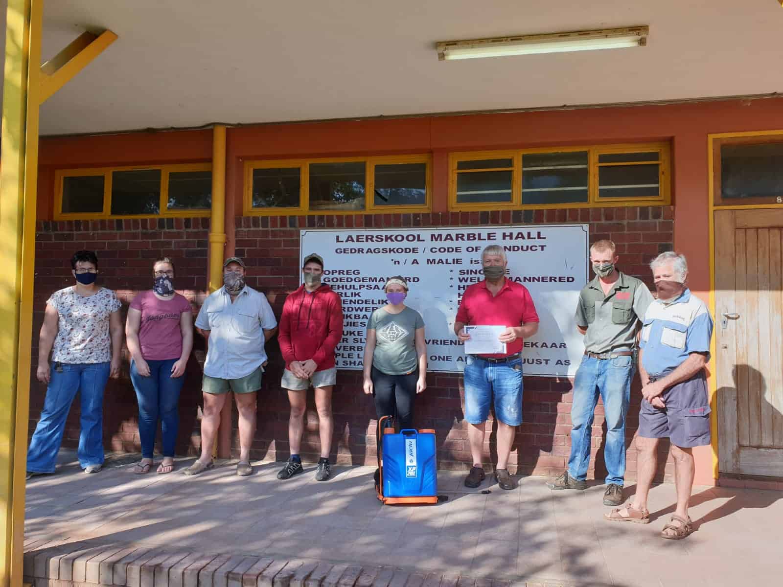 Die AfriForum-tak in Marble Hall het Laerskool Marble Hall op 23 Mei 2020 met ongeveer 1 100 liter ontsmettingsmiddel skoongemaak om dié skool op heropening voor te berei.