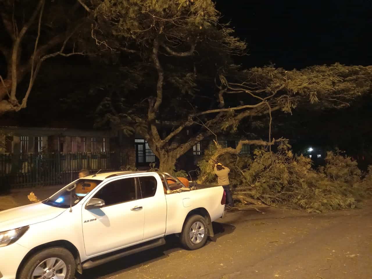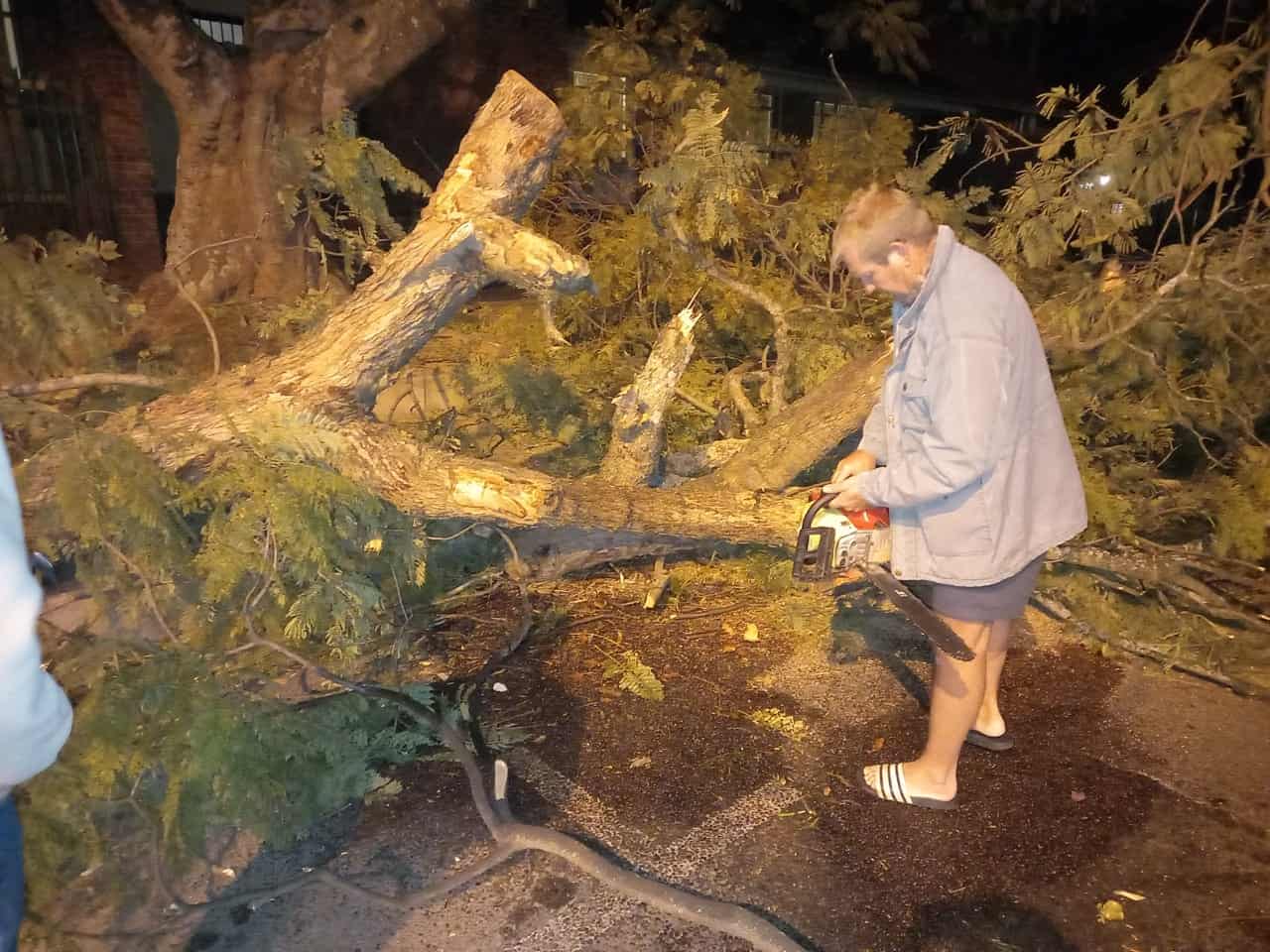 Die boomtak het een van die twee bane versper en gevolglik ’n gevaar vir motoriste ingehou. Lede van die buurtwag het onmiddellik ingespring en met twee kettingsae die boomtak kleiner gesny en uit die straat verwyder.