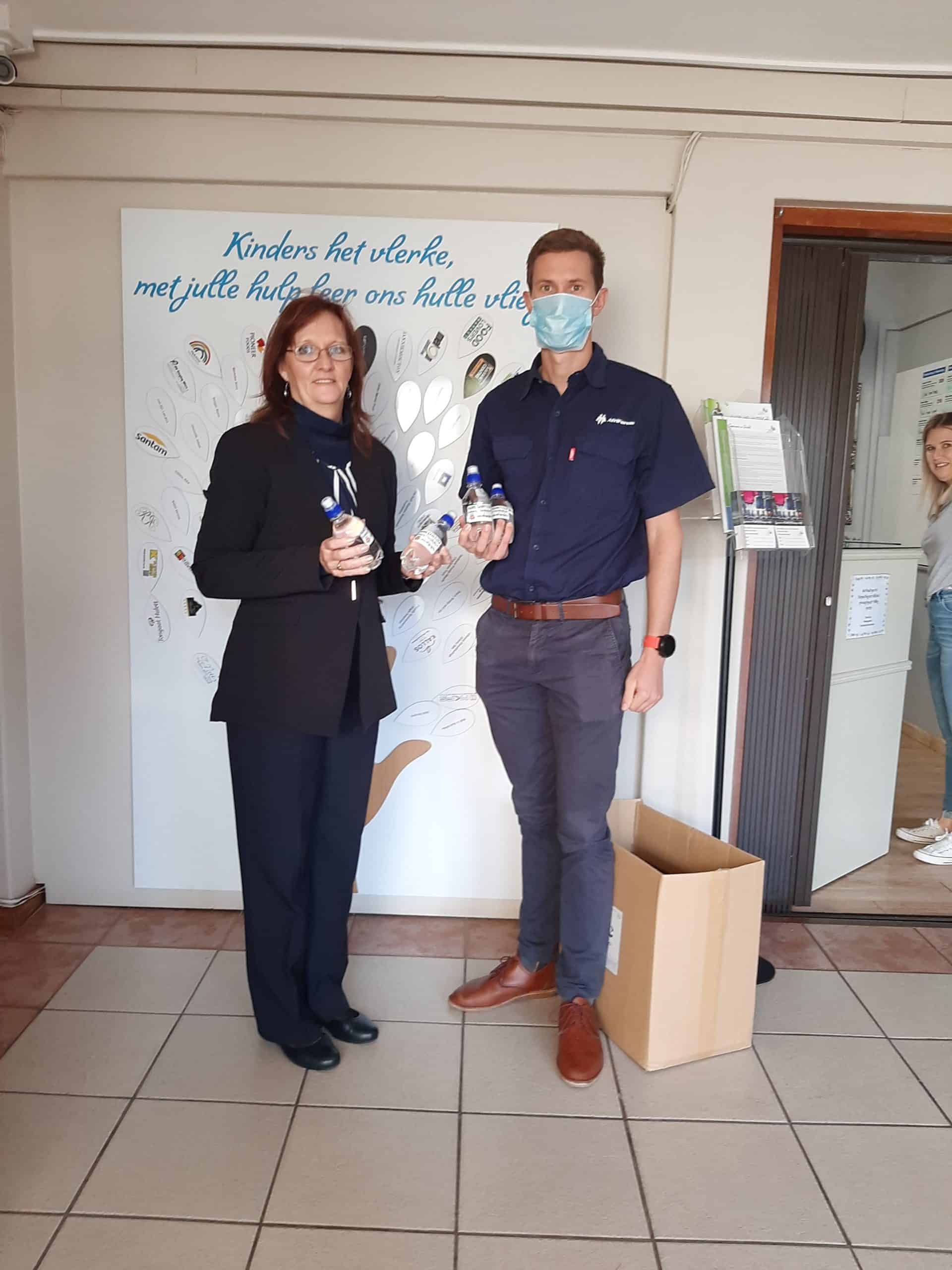 Die burgerregteorganisasie AfriForum het van 14 tot 23 April 2020 3 000 botteltjies handreiniger aan instansies in verskeie Wes-Kaapse dorpe geskenk.