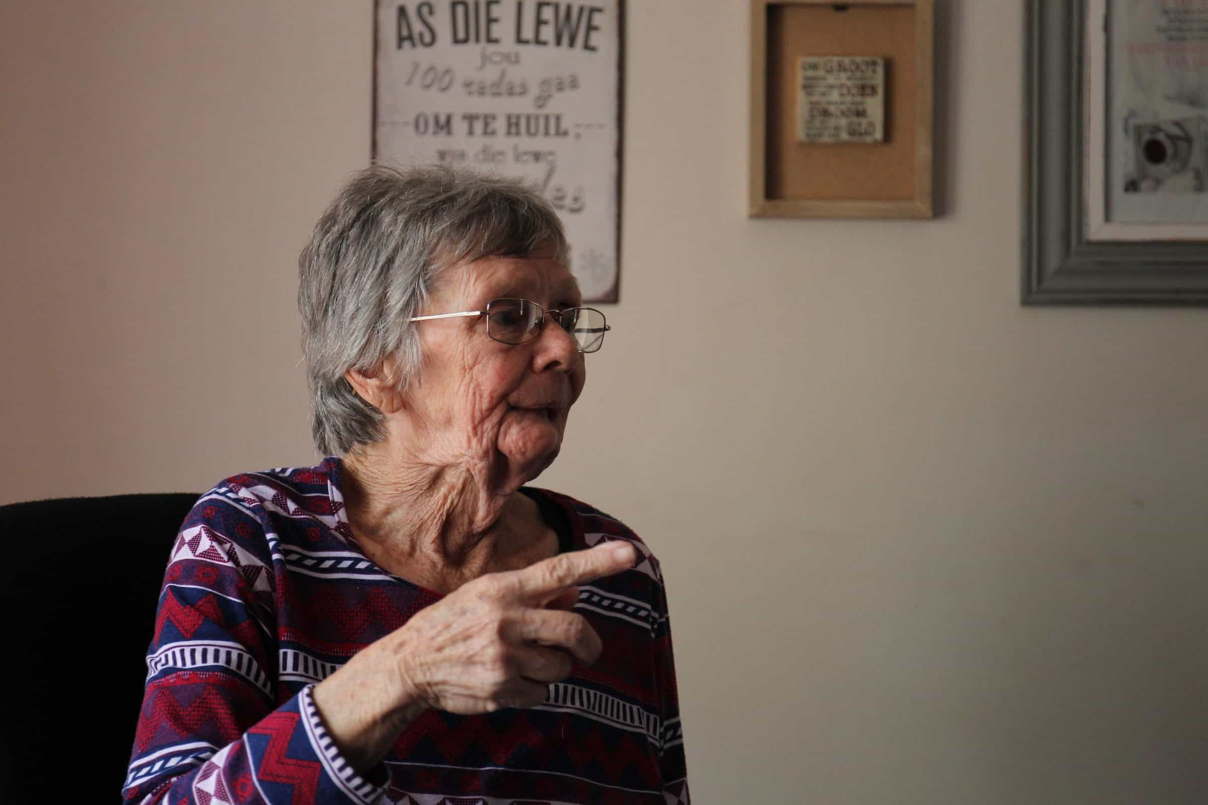 Vroeg in 2000 het sy en haar man net op die plaas Voorwaarts buite Messina ingetrek. Sy het na klippe gekyk wat sy in die tuin wou gebruik toe sy deur twee mans met donkerbrille oorval is. Sy het ’n hou teen die kop gekry, maar kon daarin slaag om tot in die hoofpad te hardloop waar plaaswerkers haar hoor skreeu en te hulp gesnel het. ’n Paar jaar later het hulle by kinders op Thabazimbi gekuier. Hulle wou piekniek op ’n koppie gaan hou en is dorp toe waar sy en haar skoondogter geld by die bank getrek het om kos te koop. Toe sy weer sien het ’n aanvaller by die OTM ’n vuurwapen op haar skoondogter en kleinkind gerig. “Ek het geskreeu: Skiet my, skiet my, maar los hulle!”