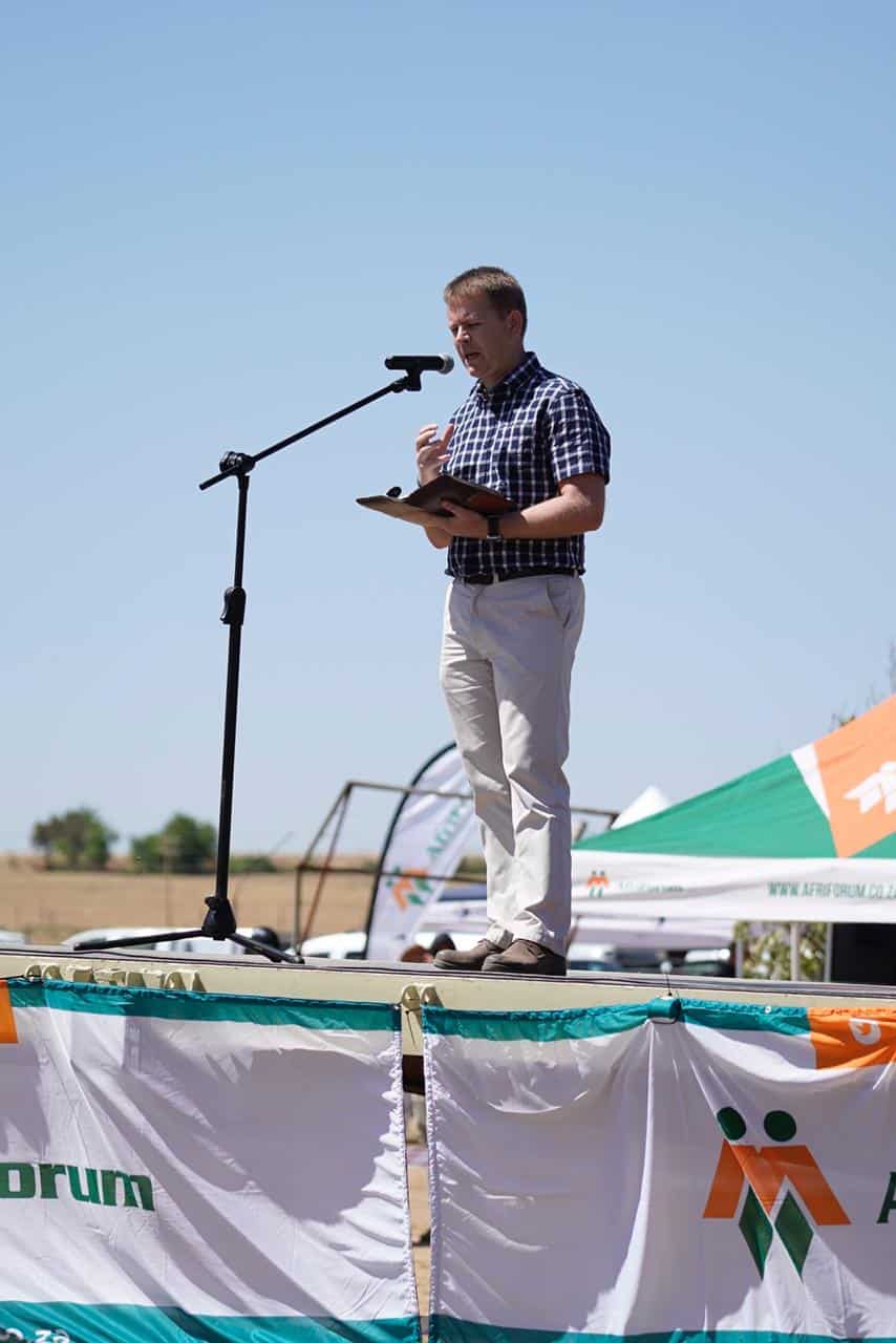 “As ek so rondkyk, sien ek boere en kinders van God. Laat ons hande vat as boere van die Vrystaat en die land. Onthou, die kos op jou tafel vanaand is gemaak deur wit en swart boere. Die regering moet ons uitlos en ’n omgewing skep waarbinne boere kan werk. Ons sal die ekonomie optel. Die wit en swart boere van die land.”