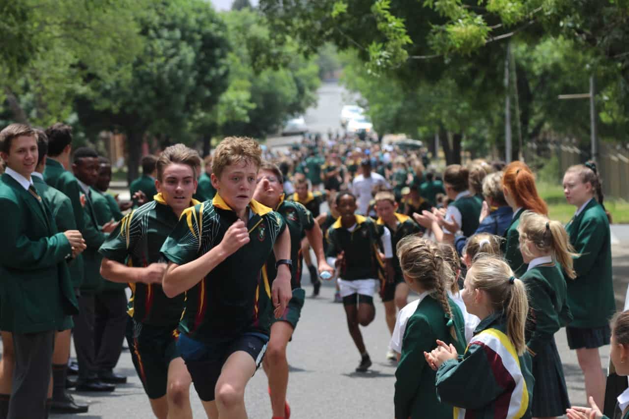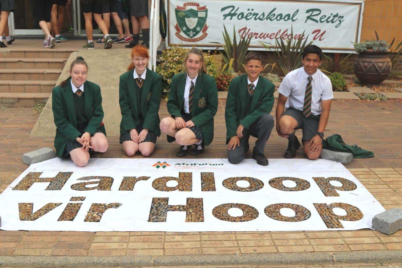 Kinders en inwoners van Reitz het die drawwers 11:30 by Wolweplaas ontmoet en saam tot by Hoërskool Reitz gehardloop, waarna ’n muntlegging by die skool gedoen is.