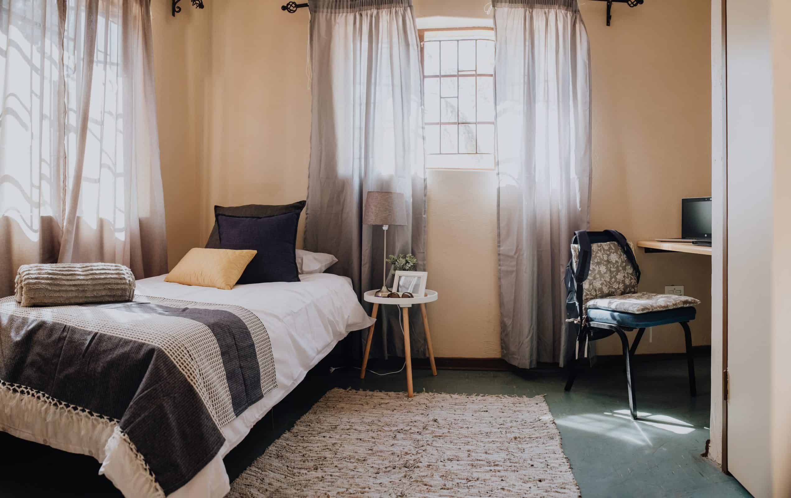 Elke student het ook sy of haar eie kamer wat toegerus is met ’n enkelbedbasis, lessenaar, boekrak, ingeboude kas en gordynreling. Studente moet dus net sorg vir hul eie matras, beddegoed, gordyne, stoel, asblik en persoonlike items.