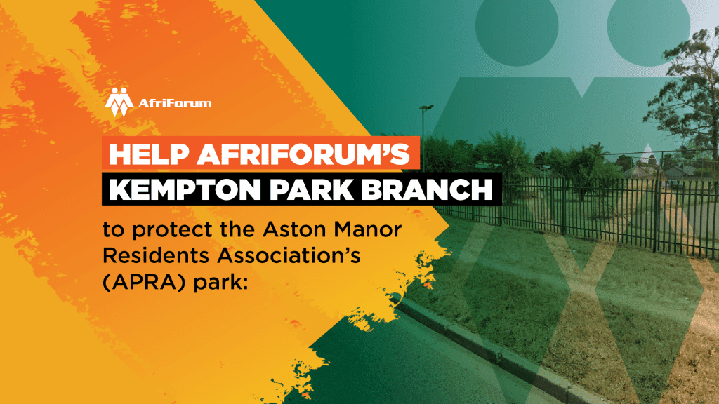 Help AfriForum’s Kempton Park branch to protect the Aston Park Residents Association (APRA) park: