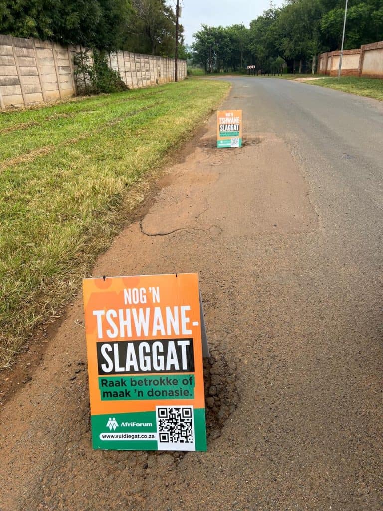 AfriForum’s Noord van die berg branch toiled and sweated for three weeks to get the roads ready for the Wonderpark Marathon, a Comrades qualifying marathon, which took place in Akasia on 24 January. The team began this giant task on 6 January to act in the interest of the athletes’ safety.