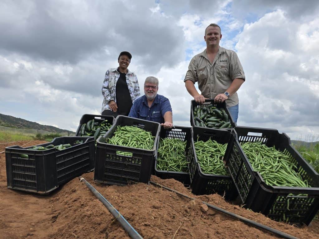 The joint agricultural development project of AfriForum, Saai and Thabake Business Enterprise that has been running outside Phokeng in North West since 2022 kicked off the year on a high note with this week’s harvest of the season’s first 200 kg of green beans. Since the project team kicked off the first planting cycle just over two years ago, more than 60 tonnes of vegetables have been harvested on the approximately 0,75 ha of land.
