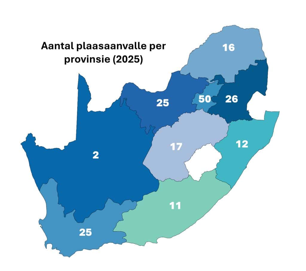 AfriForum se jongste navorsing toon dat minstens 184 plaasaanvalle en 29 plaasmoorde in 2025 plaasgevind het, vergeleke met 176 aanvalle en 37 moorde in 2024.