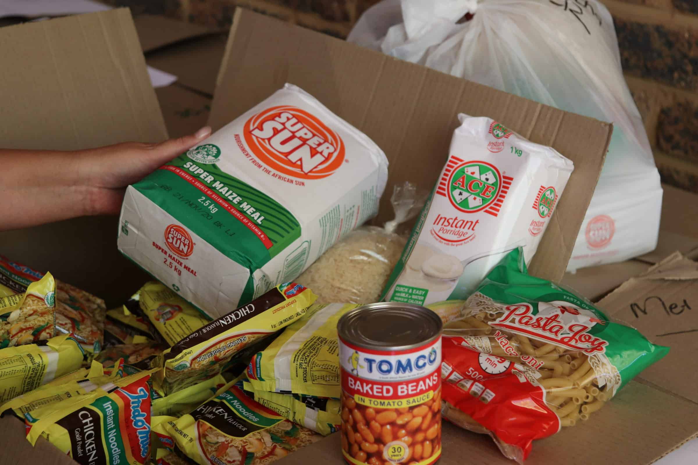 ’n Paar uur voordat Suid-Afrika om middernag (26 Maart) ’n grendelstaat word, staan kosvoorraad by die Solidariteit Helpende Hand-gemeenskapsentrum in Derdepoort, oos van Pretoria, gereed om deur behoeftige gesinne afgehaal te word.